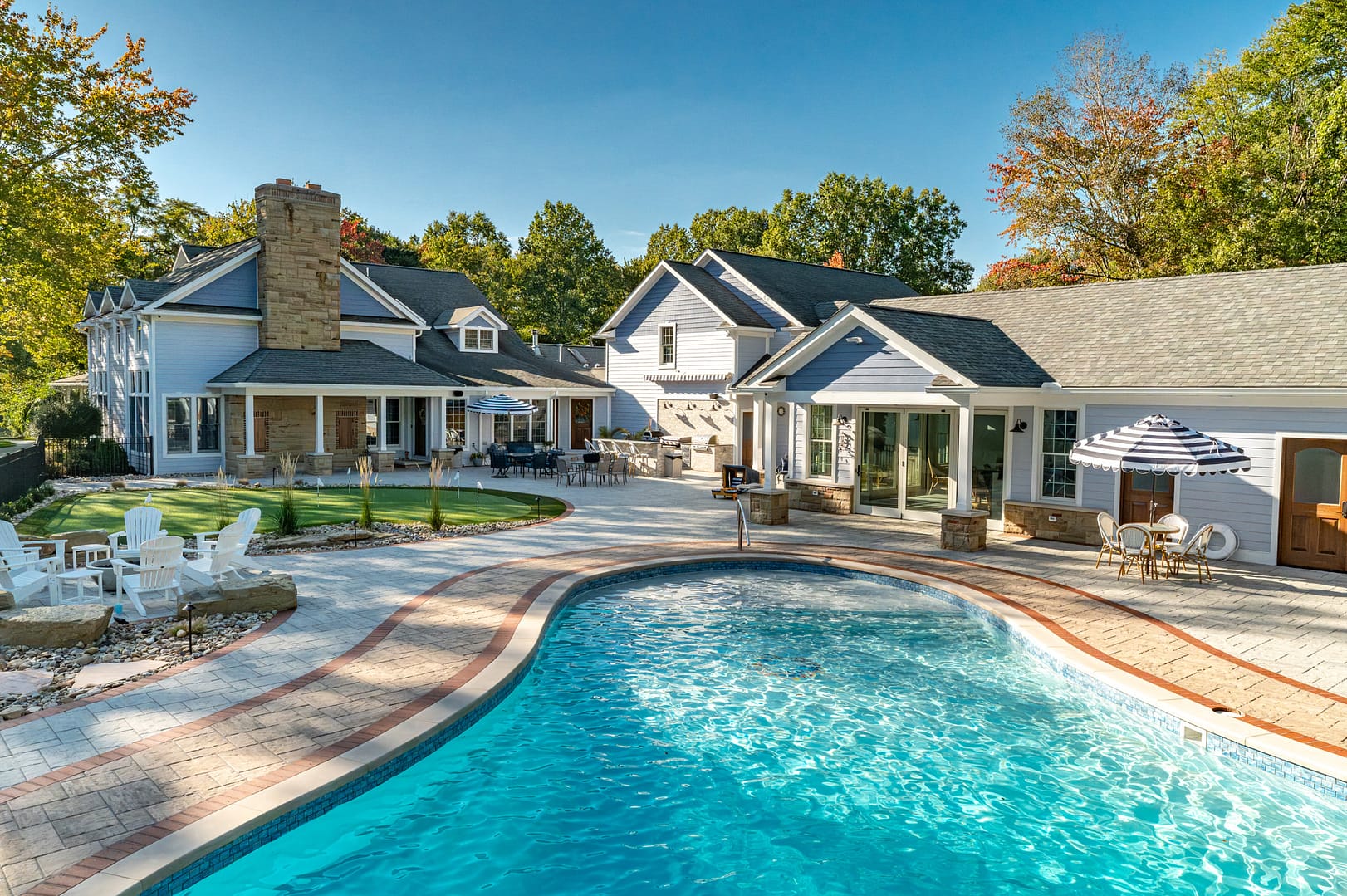 The biggest challenge of this project was managing the elevation differences between the home, pool, and pool house. We had to install the pavers in a way that would effectively shed water without the need for trough drains, ensuring the integrity of the paver patio.